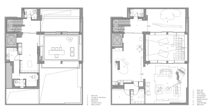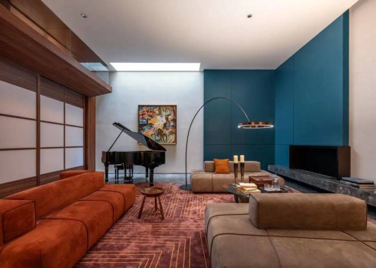地下室层是娱乐和家庭聚会的主要空间,因此,我们将空间设计得更现代和随意。也正是在这里,我们突破了室内空间中跨文化对话的界限。