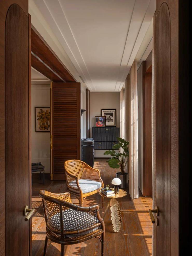 深色烟熏橡木搭配Eric Morris定制的黄铜五金件,将上海老洋房的韵味和气质在精致的细节中得到完美诠释。