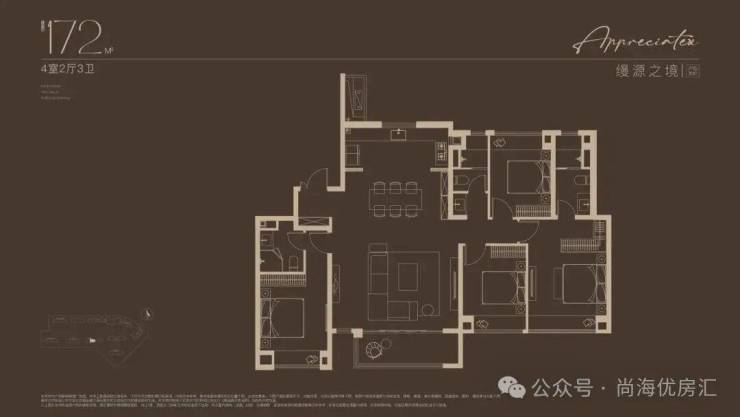 建面约172㎡4房户型,多娃家庭的进阶之选!奢阔尺度尽显家族气度!2梯2户, 子母双开门礼序入户,私密尊崇门厅;约16米四开间朝南,搭配约6米尺度横厅,揽四时风景入怀。