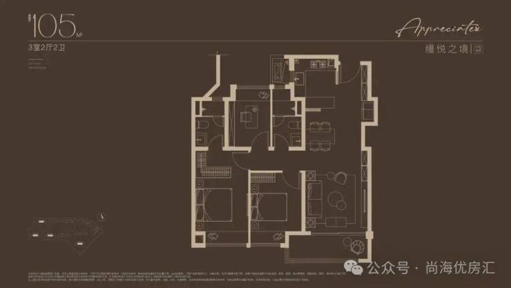建面约105㎡3房户型,总价400万级即可上车!堪称同等总价段的改善天花板!三开间朝南,约9.6米大尺度南向面宽,最大程度揽光入室;客餐厅一体化 ,连接厨房和南向阳台,动线流畅,也是更大的欢乐聚场;创新研发S墙设计,预留冰箱专属位置,释放厨房使用空间 ;主卧套房设计,奢享独立卫浴和衣帽间,尽享尊崇。