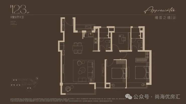 建面约123㎡3房户型,户型方正,三口之家的改善进阶之选!巧妙预留X空间,既可成为客厅空间的延伸,也可独立成室,实现更多功能想象。约12.5米南向面宽,搭配270°宽景阳台,窗外美景一览无余。