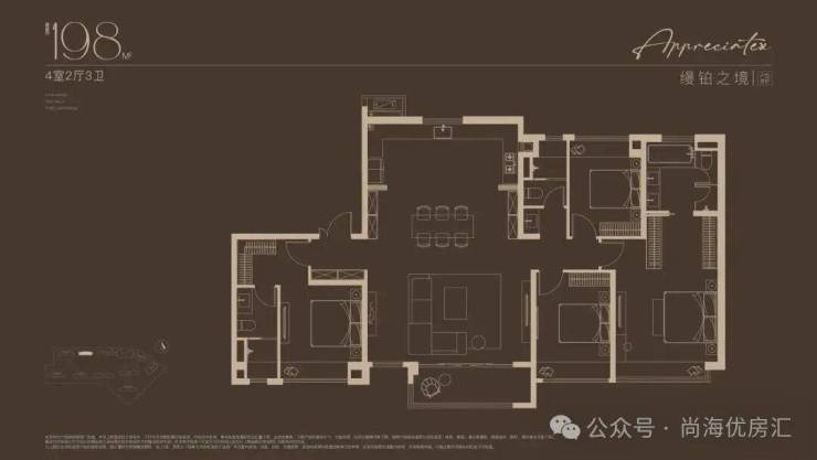 建面约198㎡4房户型,嘉定“收藏级”传世大宅!塔尖人士的挚爱之选!2梯2户的设计,子母双开门礼序入户,私密尊崇门厅,彰显尊崇生活仪式感。