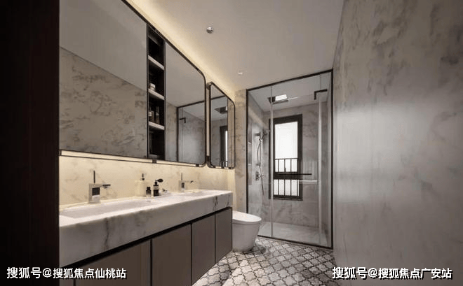 细节方面,主卧套房设计,保证了私密性。主卫的双台盆设计更是相当贴心。能实现男女主人共同洗漱的温馨场景。