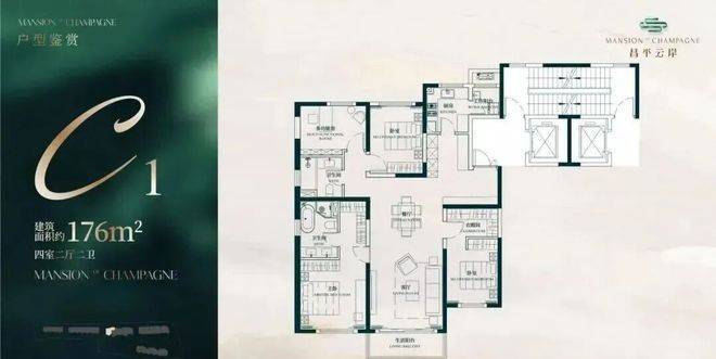 约176㎡四房两厅两卫户型:
