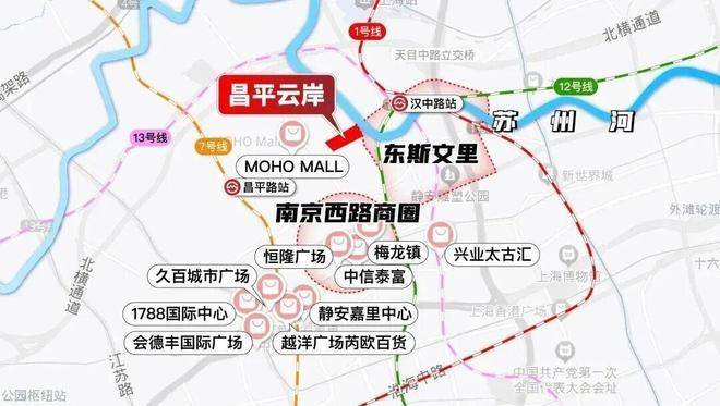 昌平云岸位于静安区江宁路板块,具体门牌号为西苏州河路1号,地处苏州河畔,与东斯文里城市更新项目仅一街之隔。