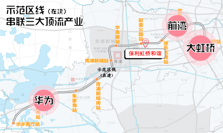 向西5站便可直达青浦华为研发中心,众多高薪就业人才的引入,势必会释放更多置业需求;