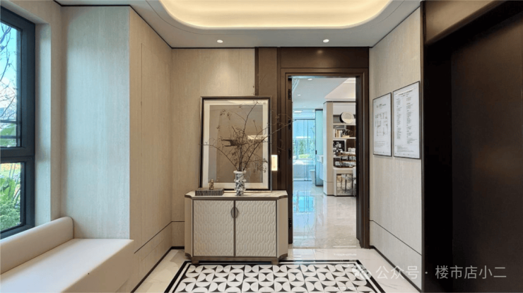 进入建面130㎡集大成精奢样板间,类一梯一户将,搭配创新飘窗设计,玄关光厅通透明亮,既延伸出充足的家庭收纳空间,让鞋履、杂物妥善归置