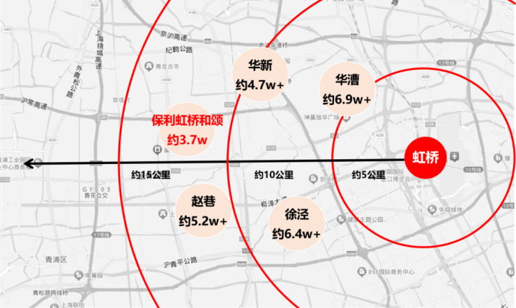 除此之外,「保利虹桥和颂」往南直线距离约1.5公里处便是崧泽高架,上高架后便可直达大虹桥核心!