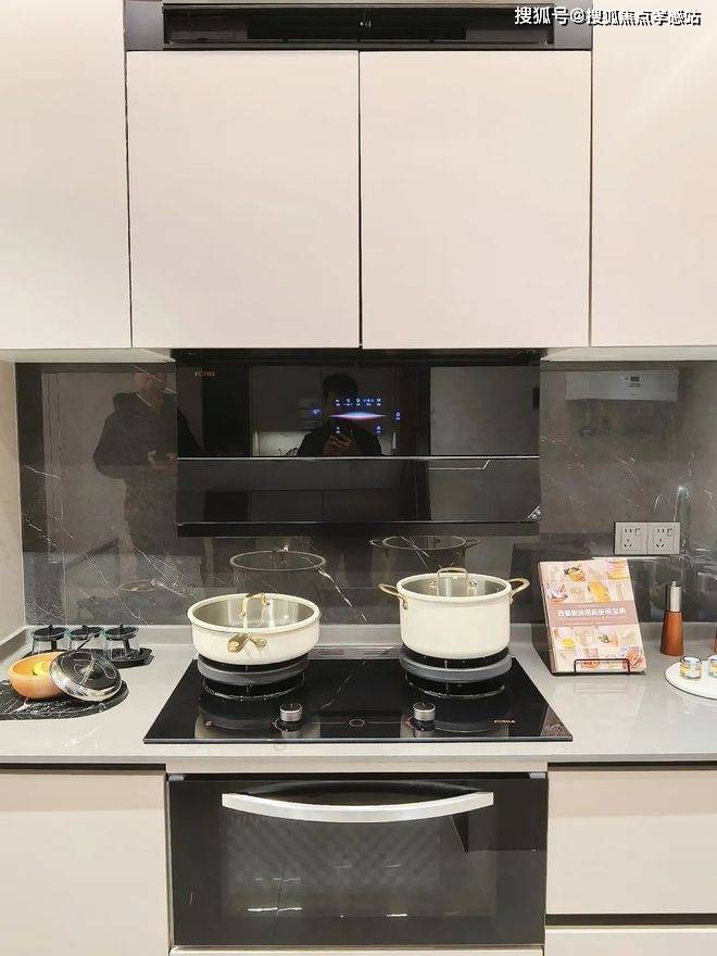 厨房里更能展现中建东孚的诚意,标配方太高端系统厨电,其中油烟机自带制冷功能,除油烟开启的同时联动空调出风,产品细节更加人性化。