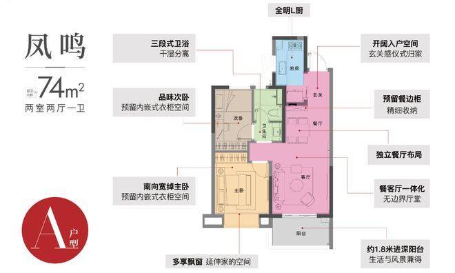 A1户型 | 2室2厅1卫 | 建筑面积约74㎡