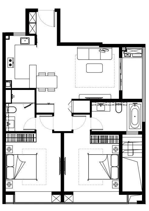 四大主力精装户型,精致与舒适度合一 建面约51㎡-61㎡-70㎡一居/118㎡二居,精致雅居生活空间