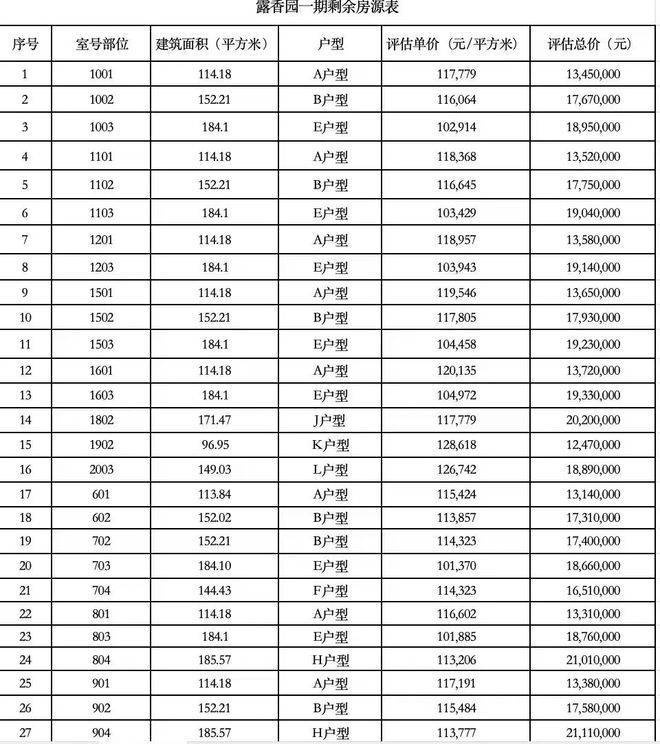 最新一房一价表: