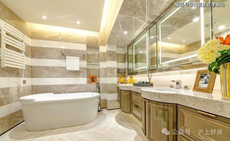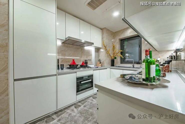 厨房就配置了铂浪高的水槽及龙头、柏丽橱柜及爱适易垃圾处理器、怡口户式中央净软水;卫浴系统选用了德立菲的卫浴、高仪龙头、卡迪欧电热毛巾架,皆为国际尖端品牌。