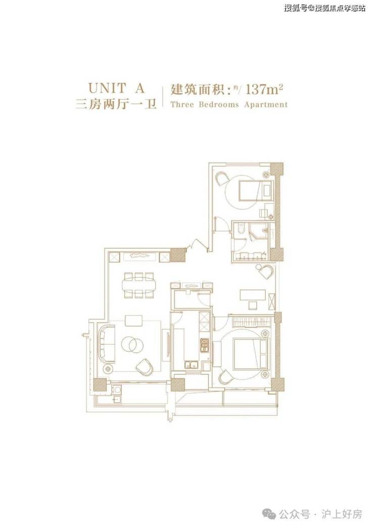 建面约137㎡3房2厅2卫▼