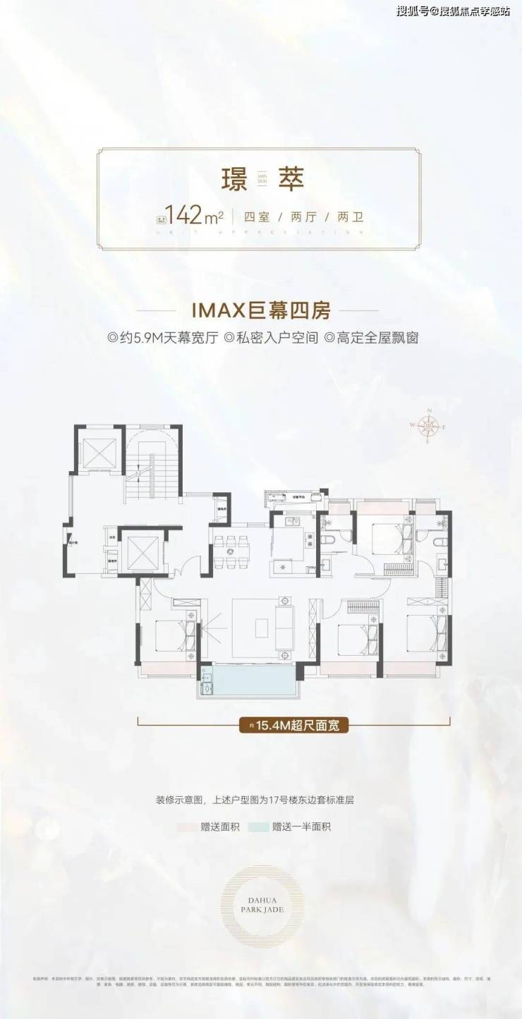 真正一步到位的改善型4房产品,大横厅的设计,四开间朝南+大横厅,约15.4米的南向面宽堪比别墅。