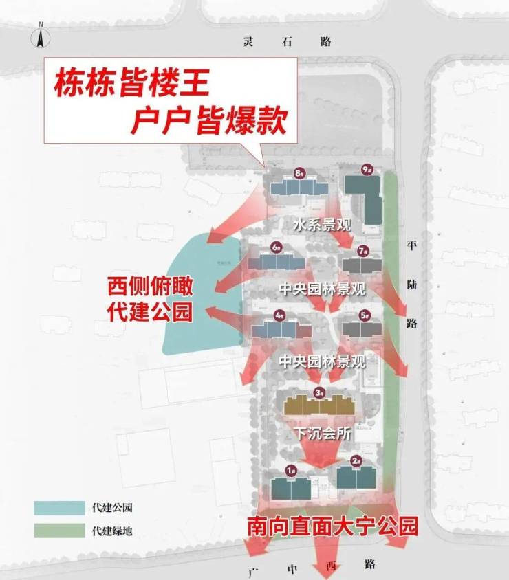 「中建·玖上琅宸」打造了一个约99米宽的超级界面门头,有非常强的豪门大宅即视感。