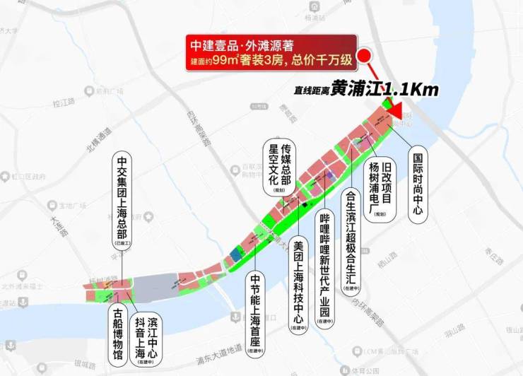 「中建壹品·外滩源著」售楼处电话:400-8855-420【☎️售楼处认证】✨✨✨项目与黄浦江直线距离约1.1公里,项目与国际时尚中心直线距离不到1公里,与超极合生汇(在建)直线距离约1.2公里,可谓是近水楼台。