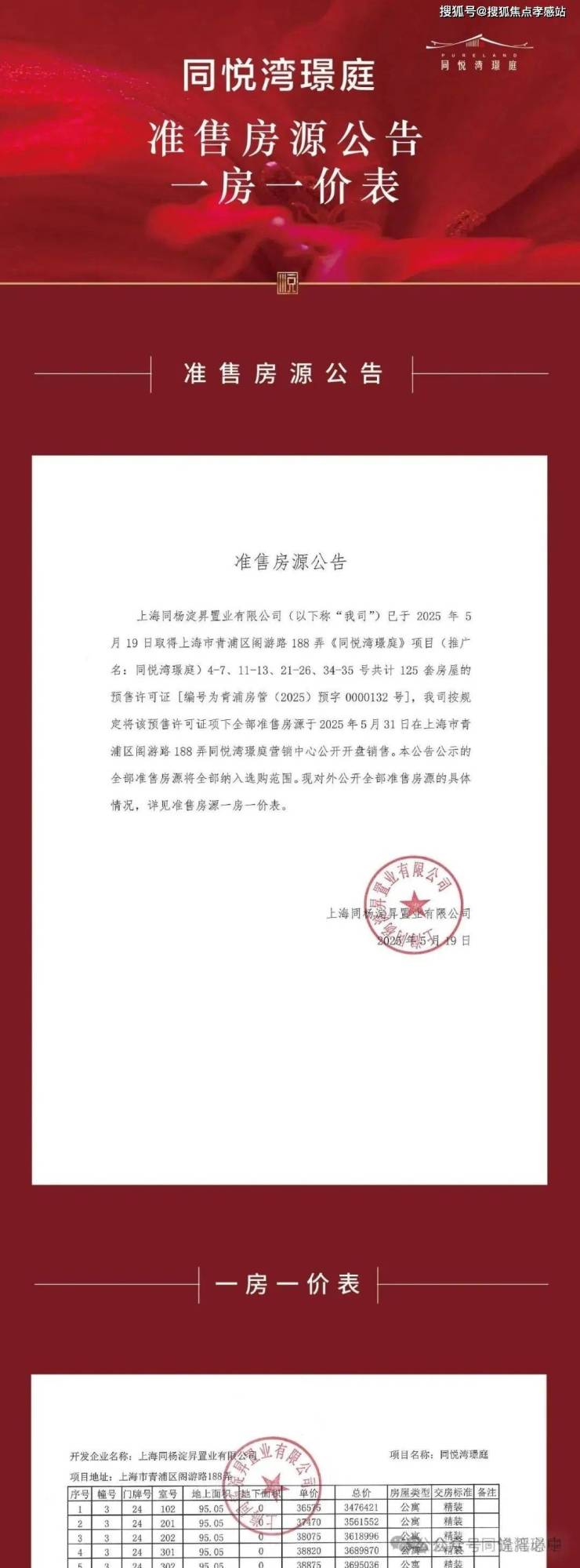 一房一价表发布!朱家角「同悦湾璟庭」售楼处电话:400-885-5420✨✨5月30号开盘,建面约85-129㎡洋房&叠加,均价4.35万/㎡!错过不再