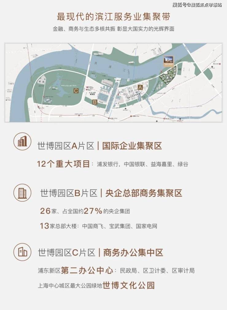 近享世界级滨江艺术带、2平方公里世博文化公园、五国金砖银行、央企总部等国际级配套。