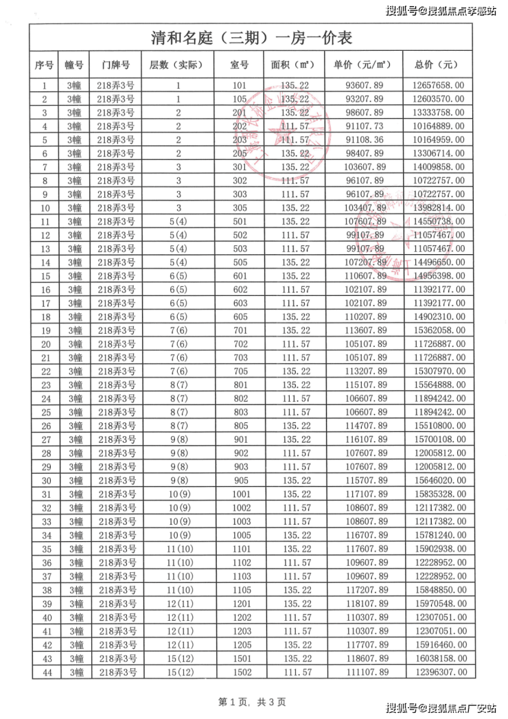 项目一房一价表▼