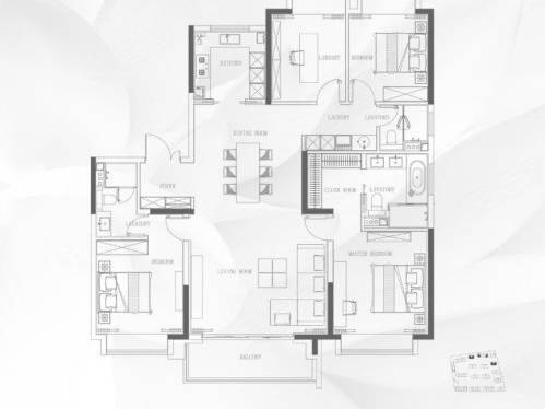 1. 建面约 191㎡ 四房两厅三卫(入门奢宅)