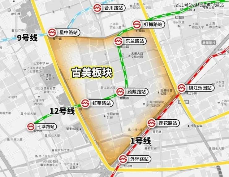 交通方面,古美坐拥双轨交,项目北有9号线星中路站,线路能级高,2站漕河泾、5站徐家汇,还能直达浦东世纪大道站。