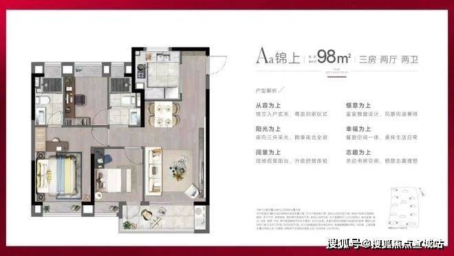 户型面积:建面约 88-98㎡精装 3 房