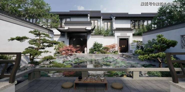 外部生态环境有多优越,自不用再多赘述。更值得关注的是项目的内里,项目与周边低密生态环境的一脉相承,对标古镇中式风格,在文脉传承和风格打造上的天衣无缝。