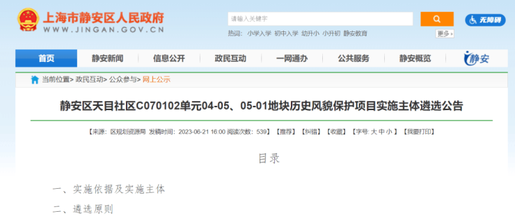 而后在2023年7月21日,华发招商联合体官宣拿下静安天目社区04-05、05-01历史风貌保护项目:
