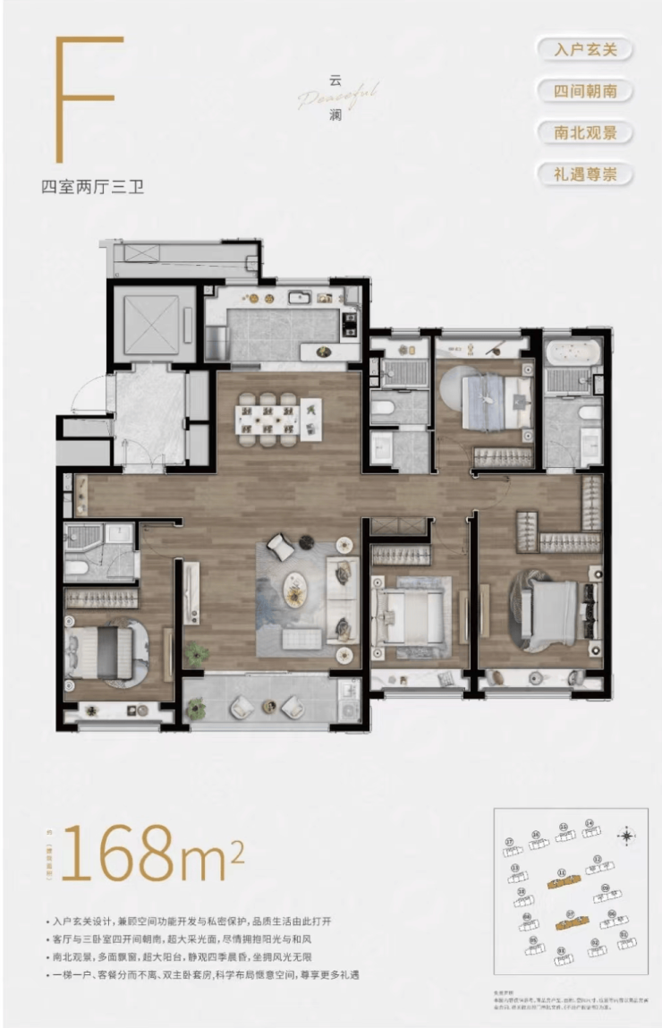 四批次项目将推出建面约98㎡3+X房户型、建面约98㎡精装3房户型、建面约168㎡4房户型。