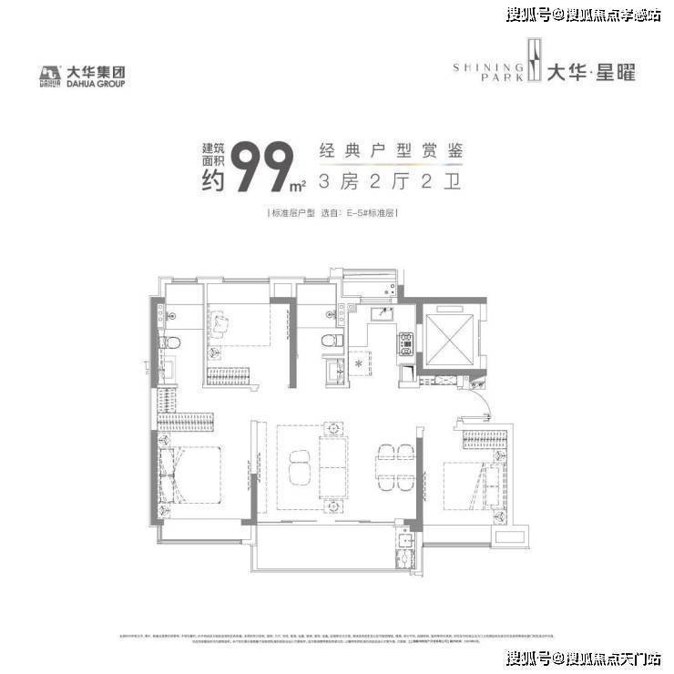 另外,3房2卫5飘窗的设计,保证了主人的私密空间,也保证了室内的收纳空间。