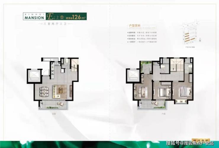 该户型是四口之家“一步到位”的刚改产品,具有较高的居住舒适度。