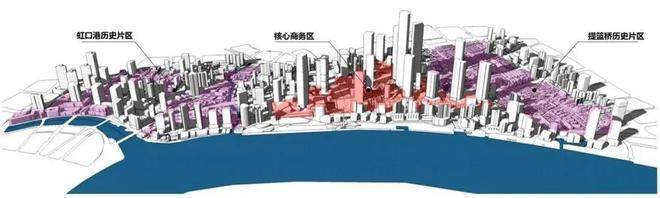 这里将形成“一心两片、新旧融合”的总体格局。其中,“一心”地处北外滩腹地,为0.8平方公里的中部核心商务区,为高强度、高密度开发地区,建筑体量将达350万㎡,这里将诞生高度达480米的新地标,成为浦西新的制高点。“两片”即西部虹口港活力片区和东部提篮桥片区,为低层高密度空间格局和公共空间网络。这种新旧融合的建造模式,让整个北外滩区域氛围更加灵动多元。
