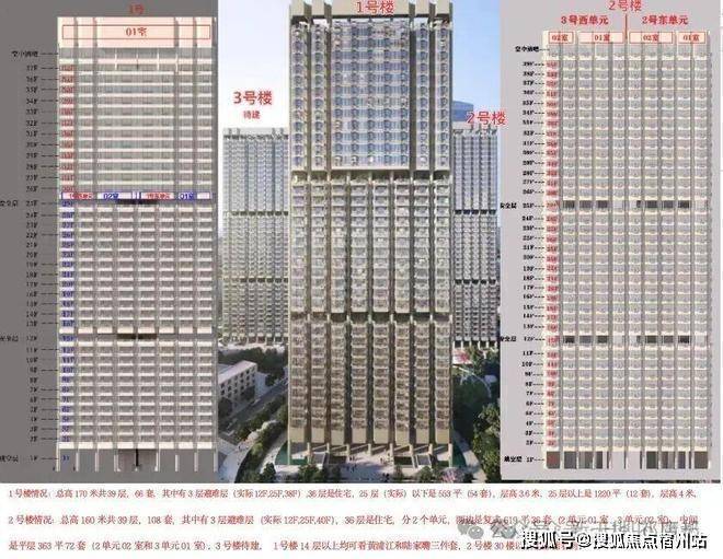 1号楼情况:总高170米实际共37层,56套,实际36层是住宅,25层(实际)以下是553平(44套),层高3.6米,25层以上是1200平(12套),层高4米。