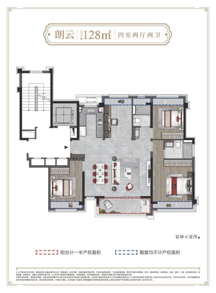 (建筑面积约128平米展示样板间 非交付标准 仅供参考 交付标准以合同约定为准)