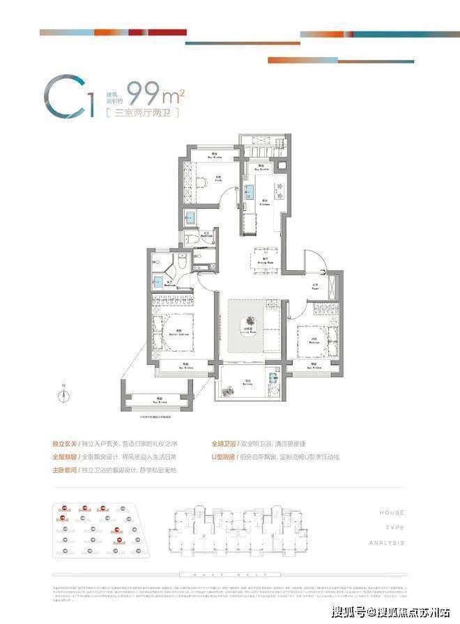 当然,还有三开间朝南、全卧室带飘窗以及卫生间干湿分离等等细节都有配备。