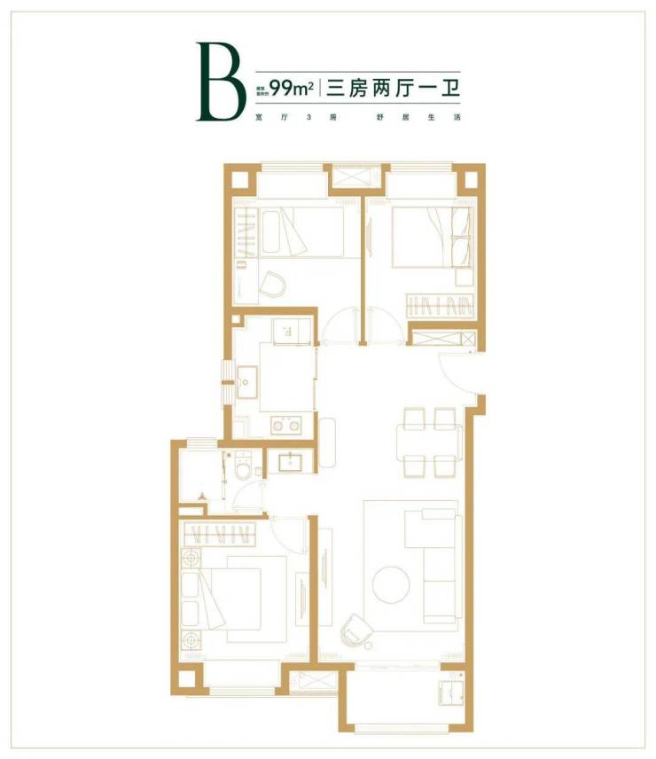 约99㎡3房2厅1卫样板间照: