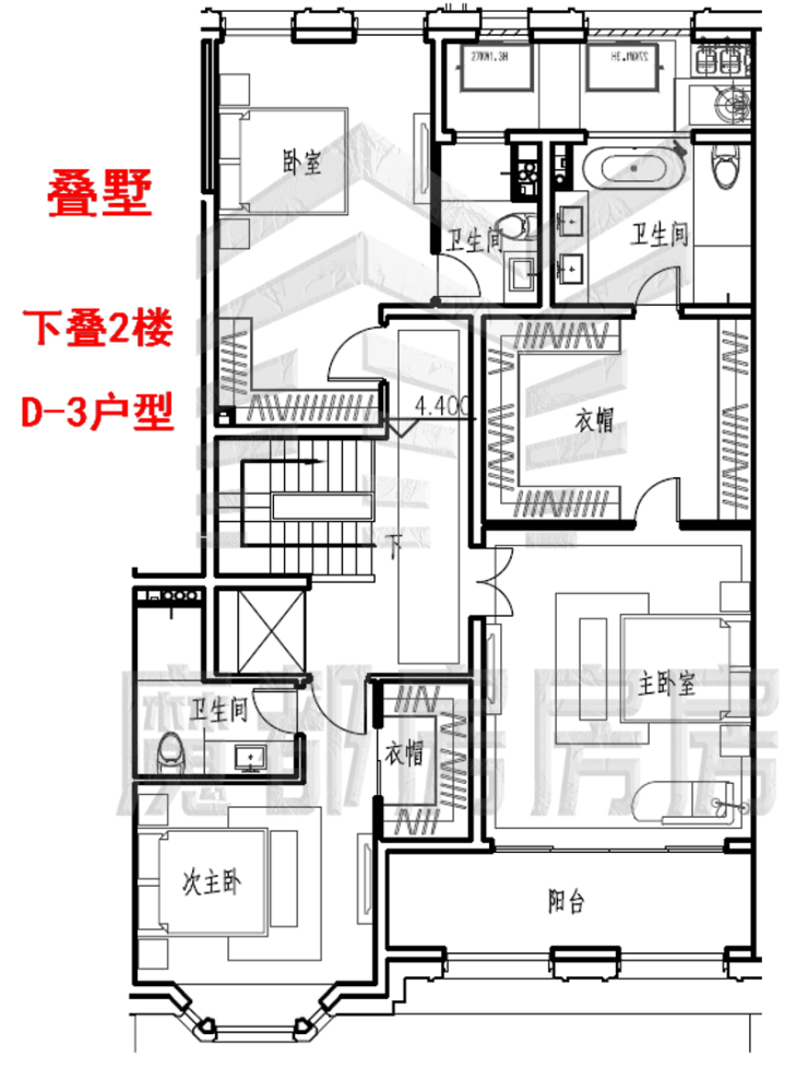 叠加别墅的2-3-4楼D-4特殊户型约433㎡。