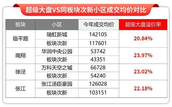 其次,凭借前文所说的独特优势,超级大盘普遍能跑出独立行情,价格基本都能超过同板块次新房20%以上,属实是真正的二手价格风向标,稳稳的资产压箱石!