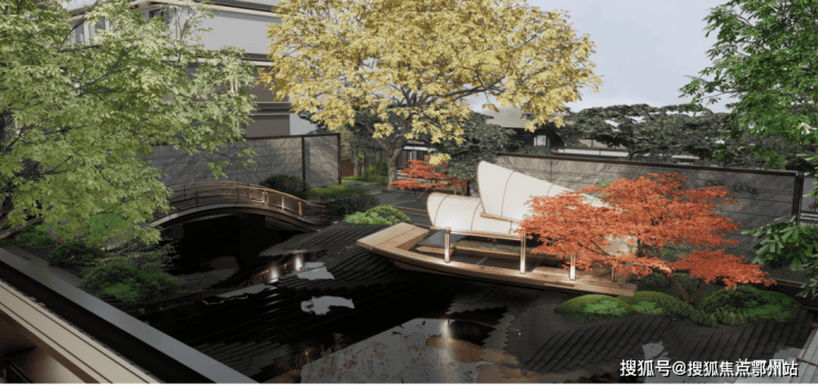 4层悬浮式下沉园林:设计理念来自全球十二大奢华酒店之一的迪拜丽晶公寓,每一个观景露台都种植着不同的植被,一步一景。