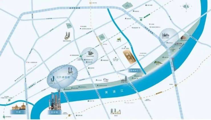 项目位于杨浦内环内,轨交方面距离12号线和18号线双轨交站点江浦公园只有约500米;同时与黄浦江的直线距离约1.5km。