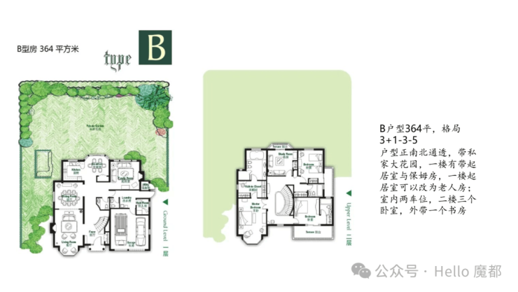 纯地上两层,建面约850㎡(7房4厅6卫)