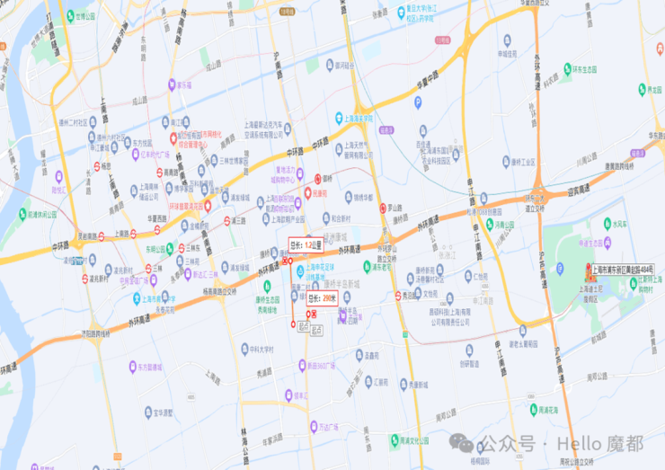 车行主干道:中环线、杨高路、沪南路、罗山路高架、外环线