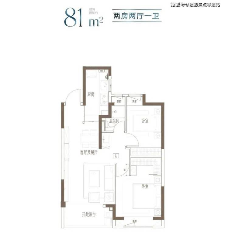 户型特点:小面积,低总价;2房朝南大面宽,舒适生活感受;卧室飘窗设计,释放更多公共空间。