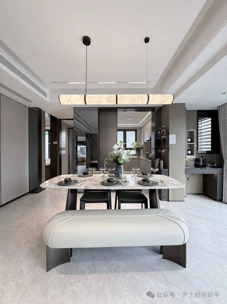 客餐厅厨一体化+大尺度观景阳台,整个公区几乎没有面积浪费,营造的空间感和尺度感远超同价位其他竞品!