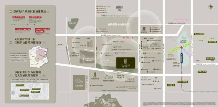 约3公里直达国家会展中心,以机场联络线、轨交2号线、17号线等立体路网,联动长三角核心城市,成为大虹桥辐射长三角的黄金锚点,无缝链接上海主城与江浙等经济强市。