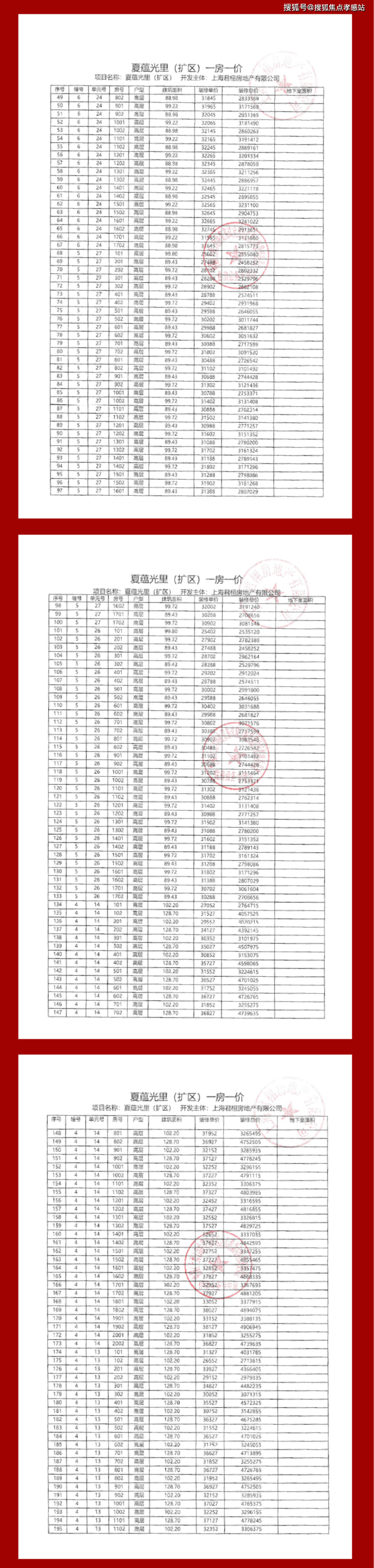 项目一房一价表