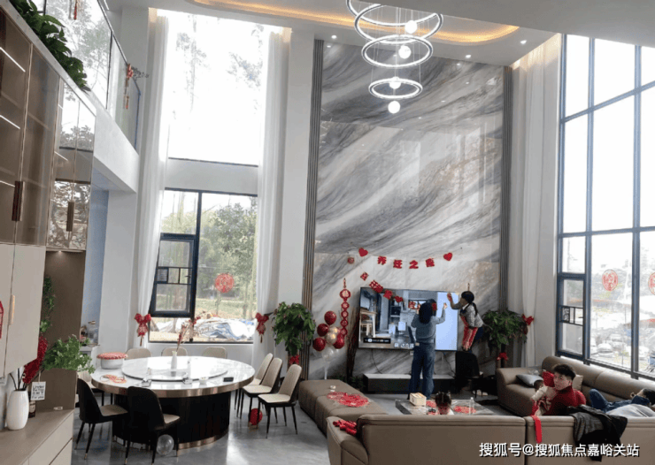 如今房子入伙,地面的红地毯,墙面贴的红色吉祥语和图案,还有气球和红丝带,外墙挂着红灯笼和挥春等等,无论是外观还是室内,房子都充满着喜庆的氛围。