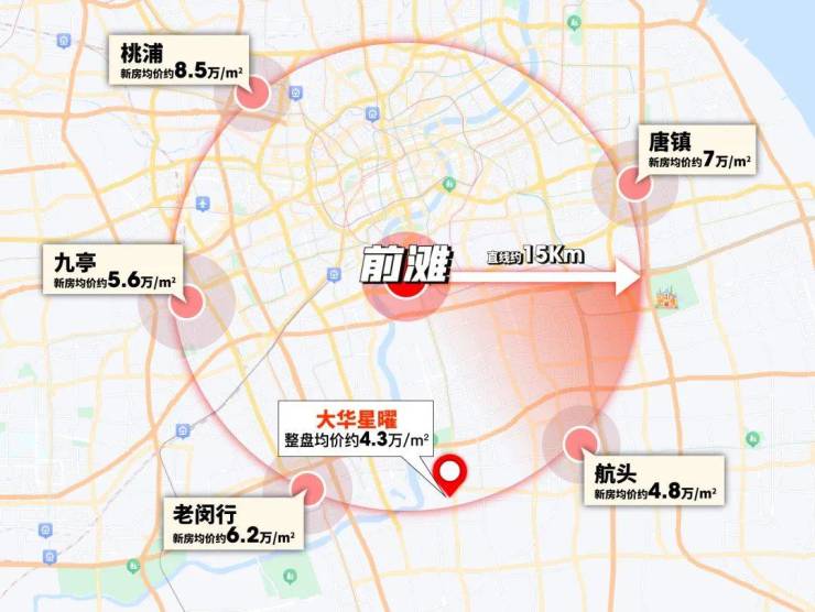 而以这三个板块为核心,周边直线约15km生活圈内的板块,起码都是500万起的置业地,大华星曜是仅有的约400万级就能买到的项目。