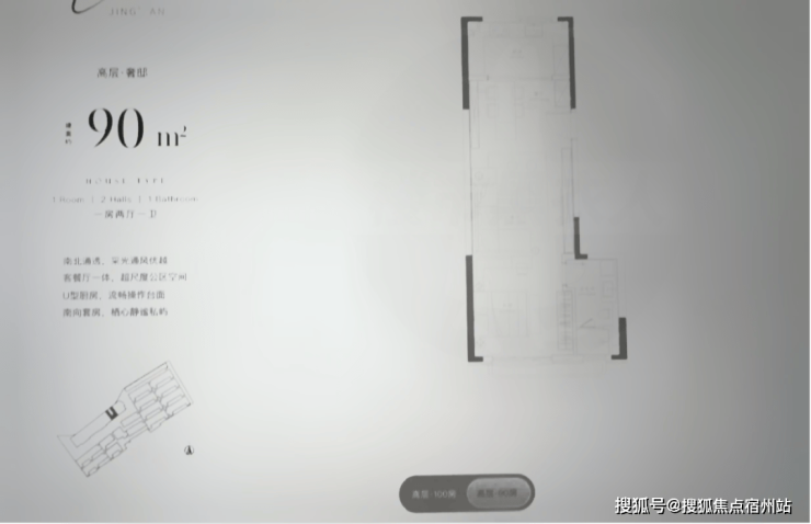 建面约90m²1房2厅1卫